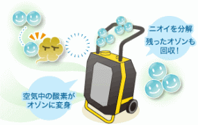 ボヤや水漏れなどの罹災時の他、多くの人が集まる場所や会議室、カラオケボックス、ホテルなどの脱臭・除菌に適しています。